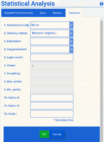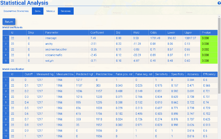 The Models tab provides the functions/tools to develop a statistical model for the prediction of a geospatial parameter (e.g. geogenic groundwater contamination).